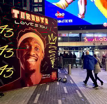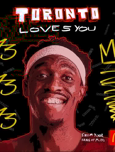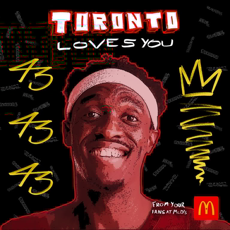 The ask was to design a street style mural for Siakam with the copy “Toronto Loves You”. All the graphics I used on the mural were hand-drawn and then digitalized into the board. The fact that I had very little image resources made me get a little bit more crafty and analog and get away from the computer for a while while I created the board, it was an awesome experience!