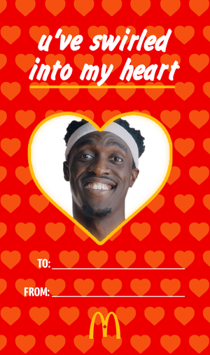 Obviously we couldn’t miss the opportunity to have Valentine’s Day Cards with Siakam lines to give away to people. They were distributed in front of Scotiabank Arena and also Displayed in the Union Station McDonald’s.